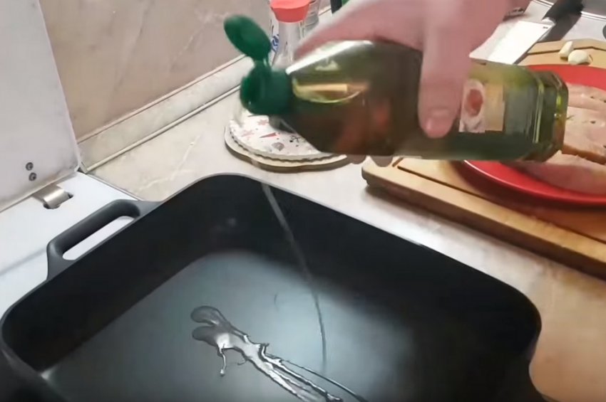 - Для приготування потрібні 1 або 2 сковороди. Їх потрібно нагріти на середньому вогні й додати в кожну оливкову олію.