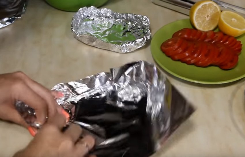 на півгодини промаринуватися. Викласти мариновану кету на лист фольги.![]()