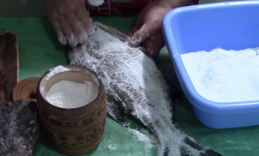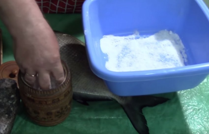 потрібно взяти емальований або пластиковий посуд для засолу. Насипати шар солі на дно. Всередину тушки теж насипати сіль, оскільки хребет великої риби має довше просолюватися.![]()
