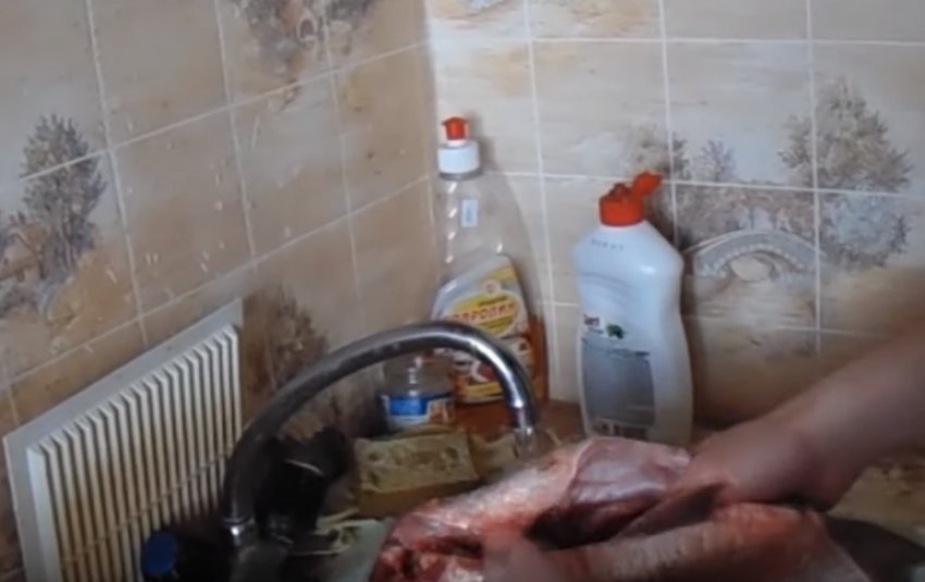 - Очищену від луски і випотрошену тушу промити холодною водою, після чого висушити серветками.