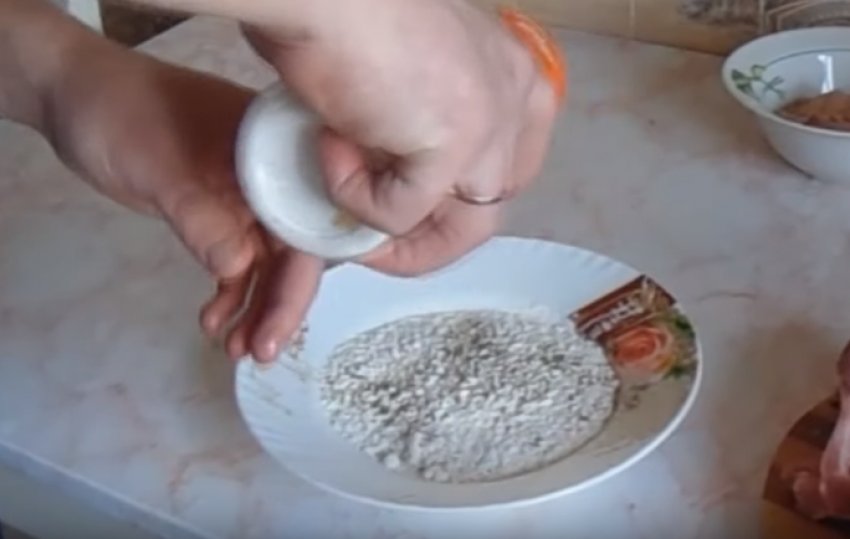 Далі необхідно приготувати борошно, додавши в нього сіль і перець, перемішати.![]()