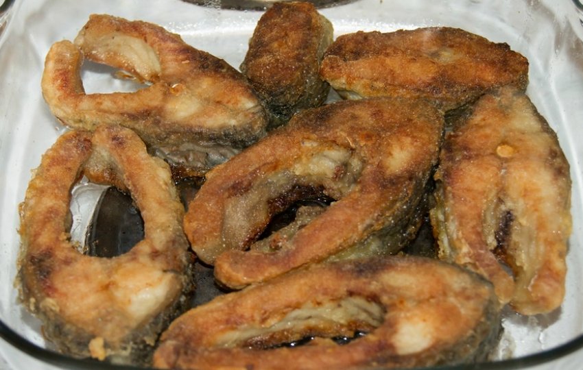 - Обваляти шматки риби в борошні, обсмажити з обох боків до готовності.