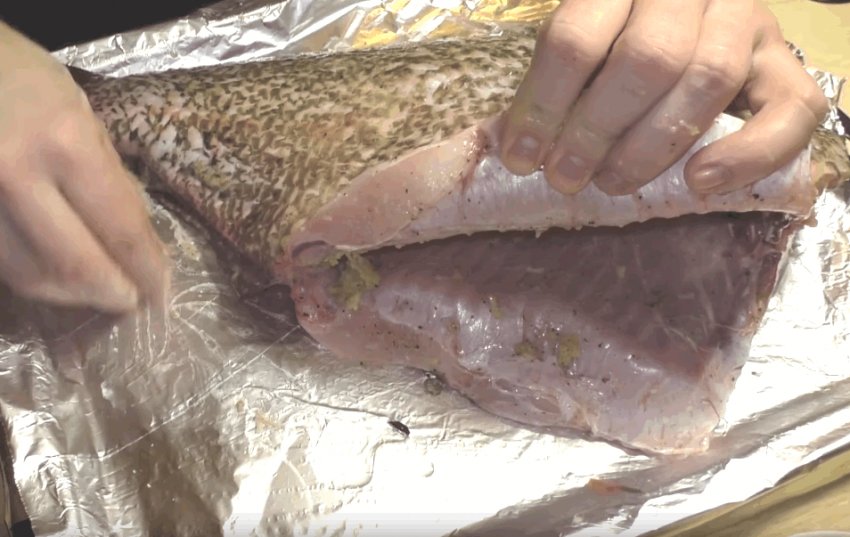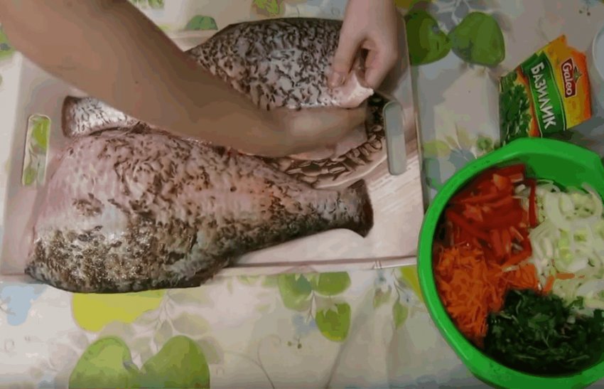 Першим видаляють спинний плавник, потім у напрямку від хвоста до голови знімають луску ножем. Після цього з тушки потрібно видалити нутрощі. Від анального отвору до зябрової області роблять надріз, очищають черевну порожнину і промивають водою. Потім видаляють плавники і голову.