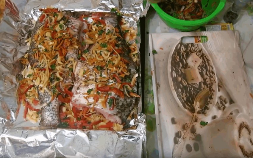 - У цьому рецепті риба запікається з головою, але потрібно видалити зябра й очі.