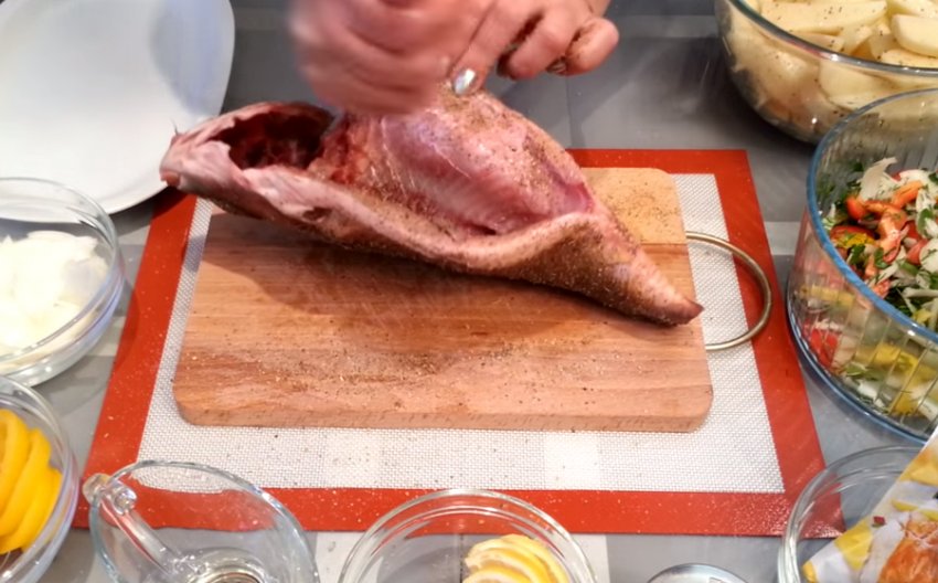 на тушці наскрізні розрізи від спини до центру черевця, через кожні 2-3 см.![]()