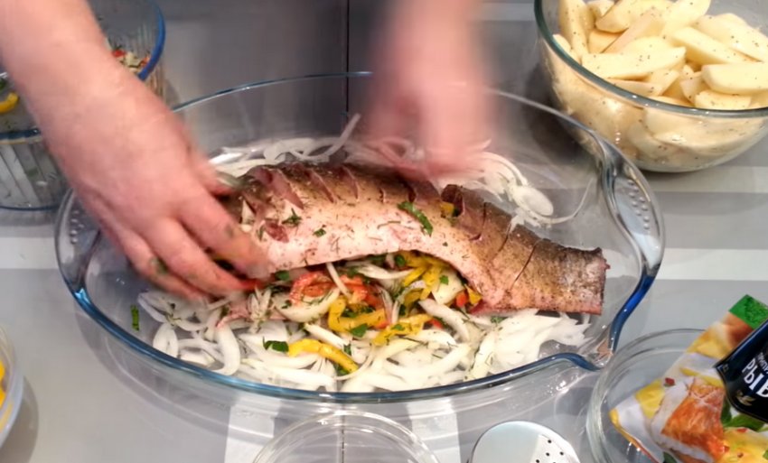 Сазан, фарширований овочами