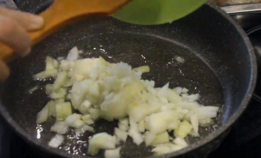 - Обсмажте цибулю до золотистості, а потім додайте на сковороду імбир і часник.