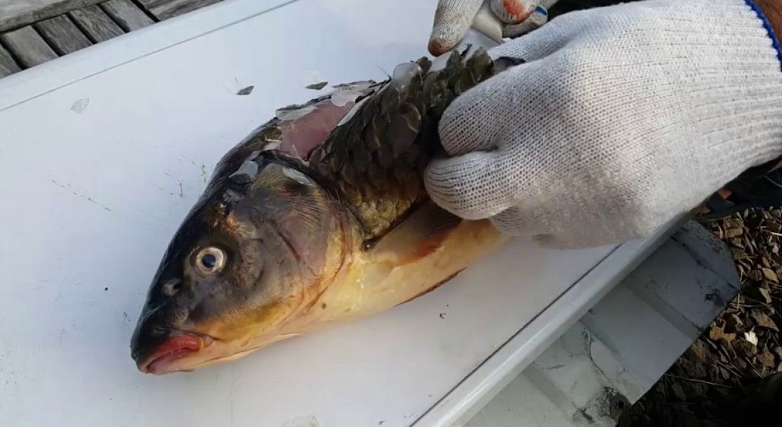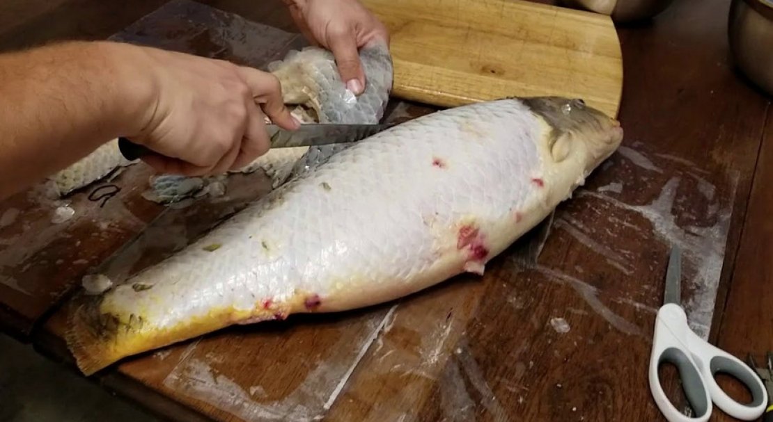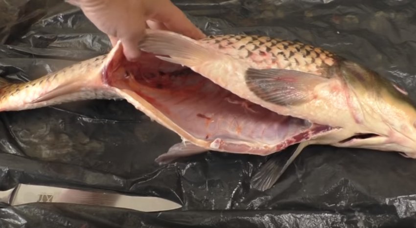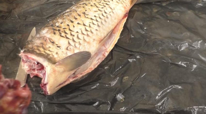 - Уздовж нижньої частини хребта сазана розташована темна кров'яна лінія, яку потрібно видалити. Саме вона надає рибі неприємного "каламутного" смаку, на який часто скаржаться люди, тому її потрібно видаляти до того, як починати готувати будь-яку рибну страву.
