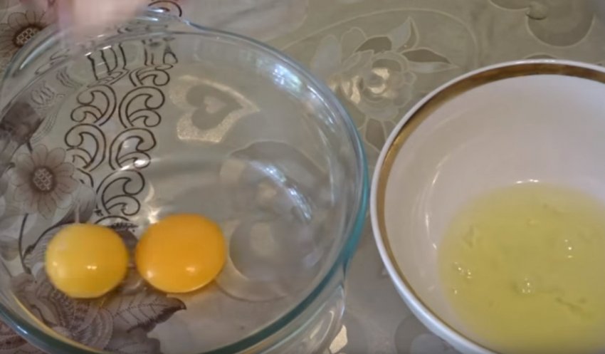 За цей час приготуйте кляр. Для цього яйця потрібно розділити на білки та жовтки.![]()