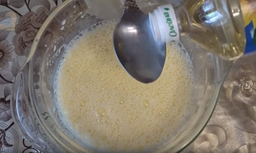Додайте 1 ст. ложку рослинної олії, перемішайте. Тепер додайте борошно, перемішайте до однорідного стану.![]()