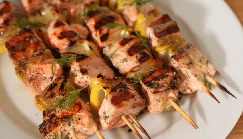 Морепродукти надзвичайно корисні для організму. А якщо ви готуєте страву з лососевих риб, то це ще й дивовижно смачно. Більшість рецептів дуже прості. Досить приготувати маринад або обсипати тушку сухою посолочною сумішшю, а потім витратити ще кілька хвилин на те, щоб підсмажити шашлики. Спеції та трави додадуть страві неповторного аромату.