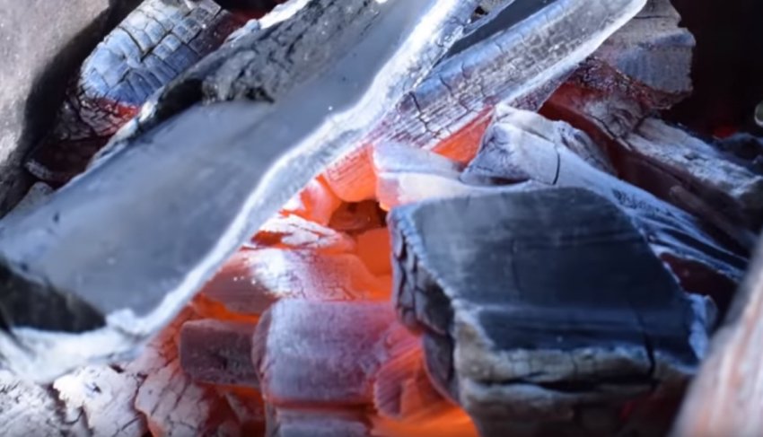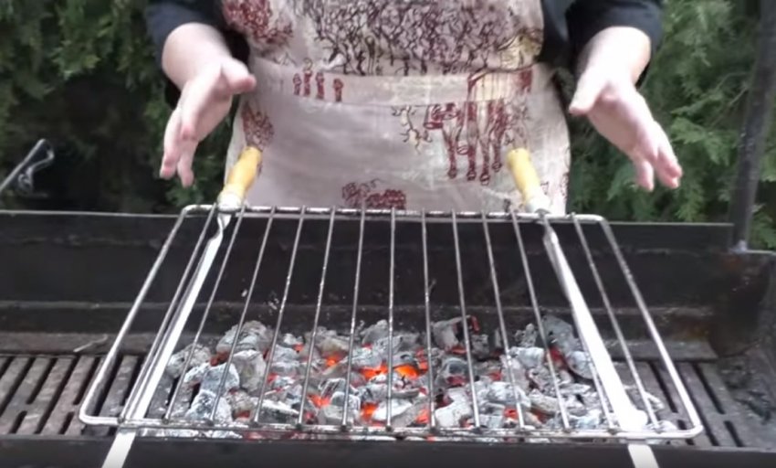 Розвести в мангалі багаття, викласти зверху вугілля і дати йому прогоріти.![]()