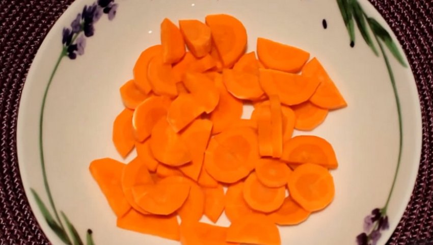 Почистити та нарізати овочі: картошку - кубиками, моркву - півкільцями.![]()