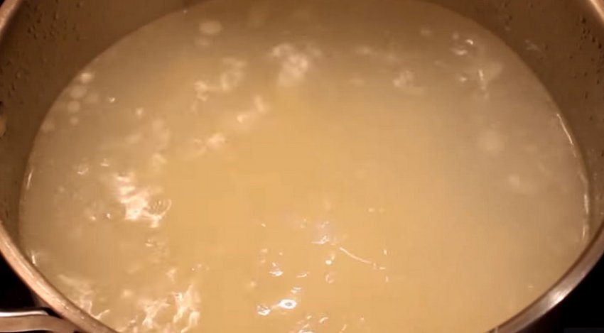 - Промити пшоно. Покласти його в каструлю з бульйоном та іншими інгредієнтами.