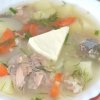 - До овочів опустити м'ясо риби, після чого залишити на суп на вогні ще на 10 хвилин.