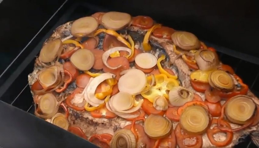 - Потім викласти підготовлену рибну тушку і закрити кришку.