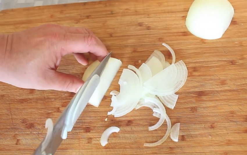 цибулю якомога тоншими півкільцями, натерти сир на крупну тертку.![]()