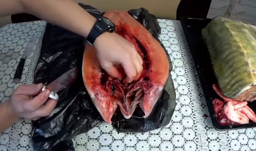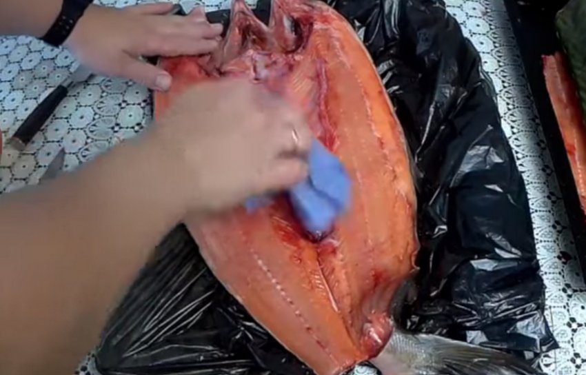 - Очистити поверхню кети від луски. Розрізати черево, щоб витягти всі нутрощі. Після цього насухо витерти м'якоть паперовою серветкою.