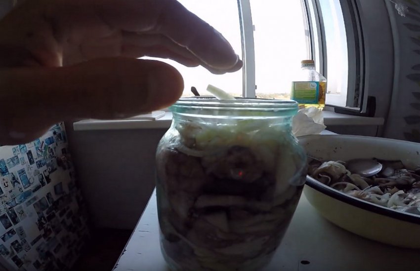 Закрийте банки щільними кришками і замаринуйте, поставивши рибу в розсолі на 24 години в холодильник. Через одну добу знімайте пробу з готової закуски.![]()