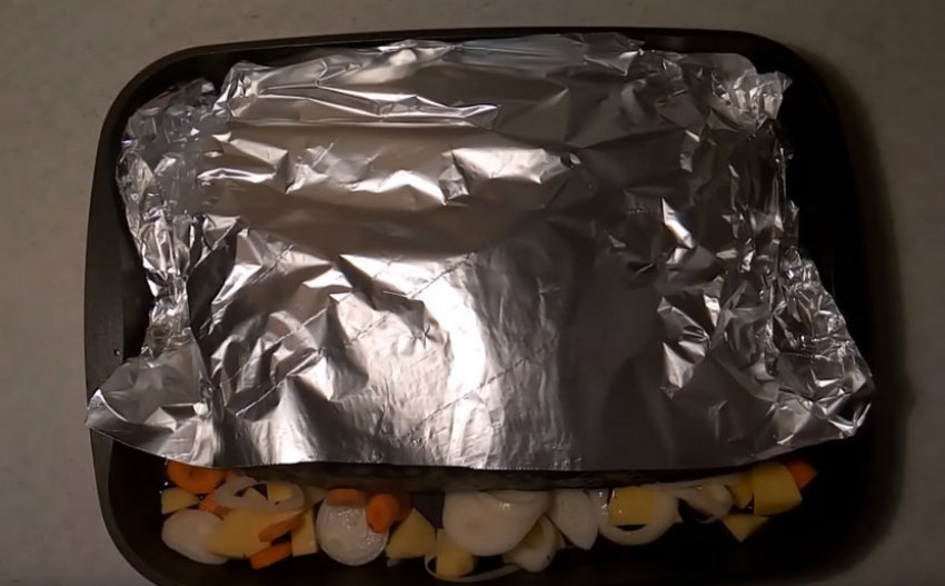 Деко вкрити фольгою і поставити запікатися в духовку. Через півгодини фольгу видалити, щоб утворилася скоринка, готувати потрібно ще приблизно 10-15 хв.![]()