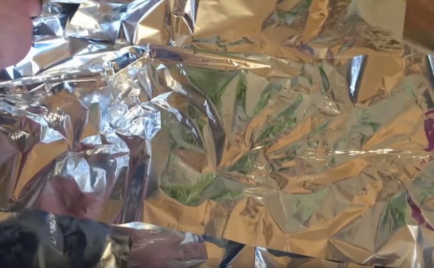 Скласти фольгу в кілька шарів, якщо риба великого розміру, укладайте листи таким чином, щоб вони частково перекривали один одного, так загальна площа стане більшою.![]()