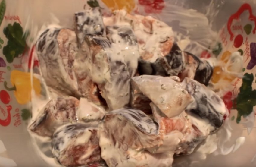 Влити сметану. Знову перемішати і залишити в маринаді на 20-30 хвилин.![]()