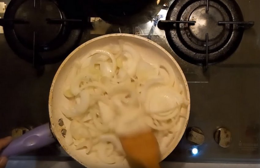 цибулю півкільцями та обсмажте її на олії до золотистого відтінку.![]()