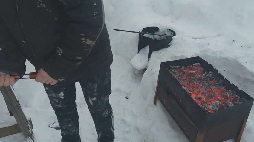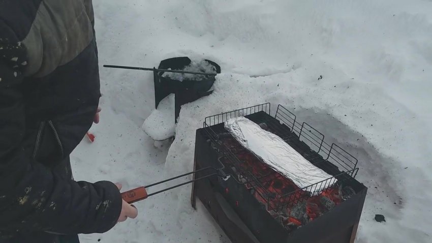 Поки тушка маринується, є час розвести багаття. Краще в цьому випадку готувати її на барбекю, але якщо такої можливості немає, можна скористатися звичайним мангалом.![]()