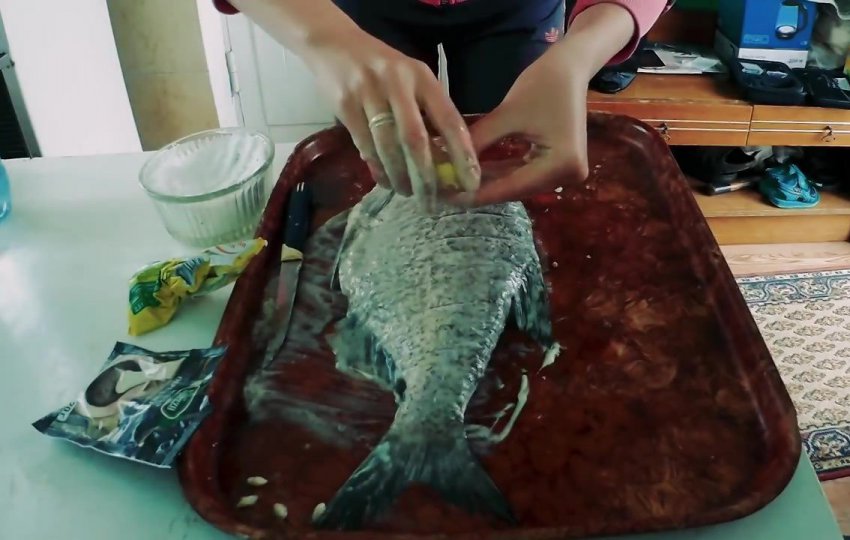 Перед тим як відправляти рибу на багаття, її слід почистити. Луску знімають ножем або спеціально призначеним для цього інструментом. Щоб у процес зберегти максимальну чистоту, можна помістити тушку в глибокий таз із водою. Коли риба повністю очищена, їй розпорюють черево і витягують нутрощі. Можливо, вам попадеться ікра - з неї теж можна готувати різні смачні страви.