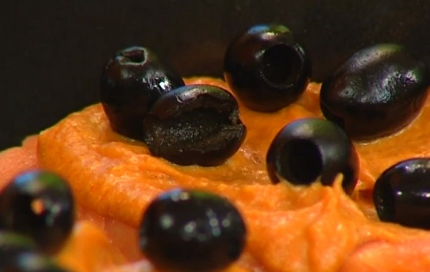 Зняти з вогню готовий соус і викласти приблизно по 3 ст. л. на кожен стейк. Прикрасити кожен із них зверху трьома оливками.![]()