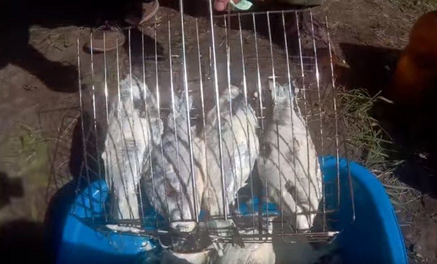 - [на спині великих екземплярів роблять надрізи для кращого просмажування та проникнення маринаду;
