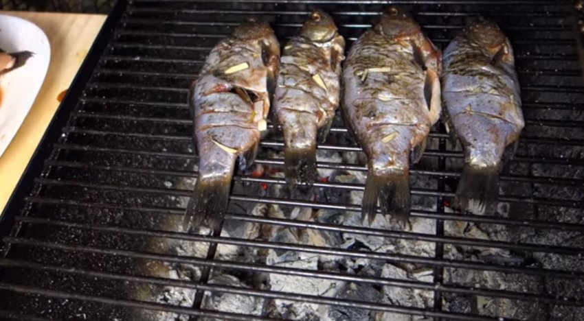 - Покладіть карасів на решітку для гриля і помістіть на мангал.