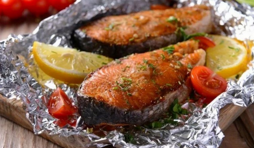 На дно дека покладіть фольгу, поверх - кету. Посоліть, поперчіть.![]()