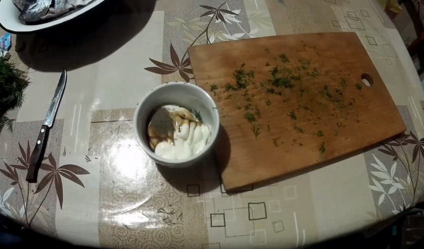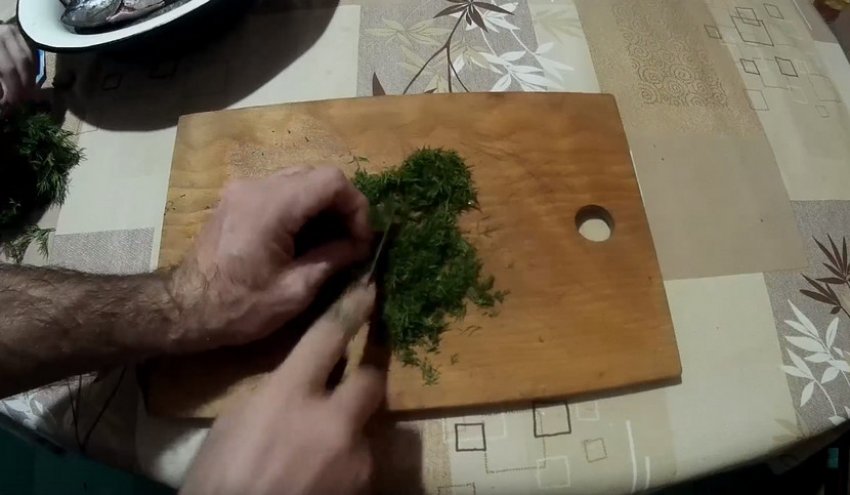 - Обробити рибу, видаливши нутрощі через голову. Від луски очищати не потрібно.