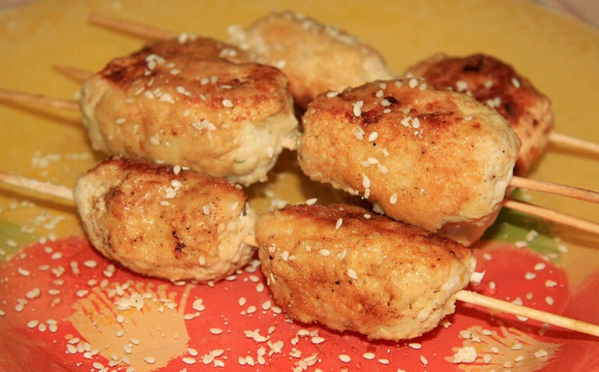- Подавати на шпажках, по черзі нанизавши ікорні котлети та картопляні шматочки.