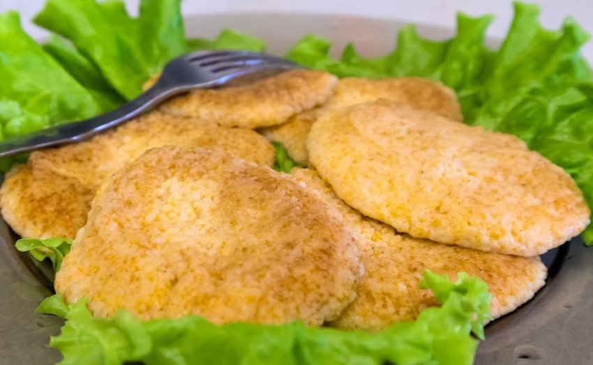 - Обсмажити викладені ложкою тонкі котлети до золотистої скоринки.