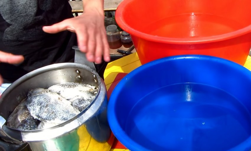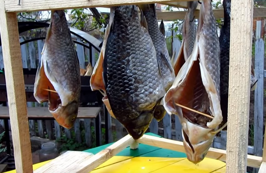 вимочену рибу на дроті, щоб вона просохла. У такому положенні карасі мають перебувати не менше двох діб.![]()