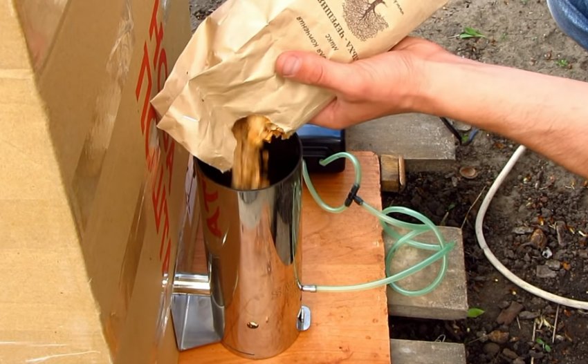 сушку картонною коробкою. До її основи підключіть димогенератор і компресор, а зверху зробіть отвір для виходу кіптяви.![]()