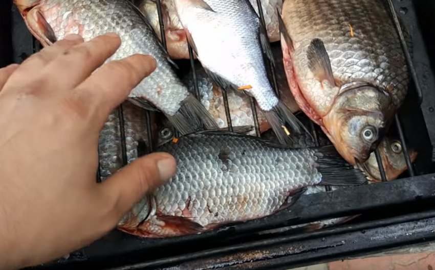 карасів шарами в конструкції та поставте її на мангал, де розташоване гаряче вугілля.![]()