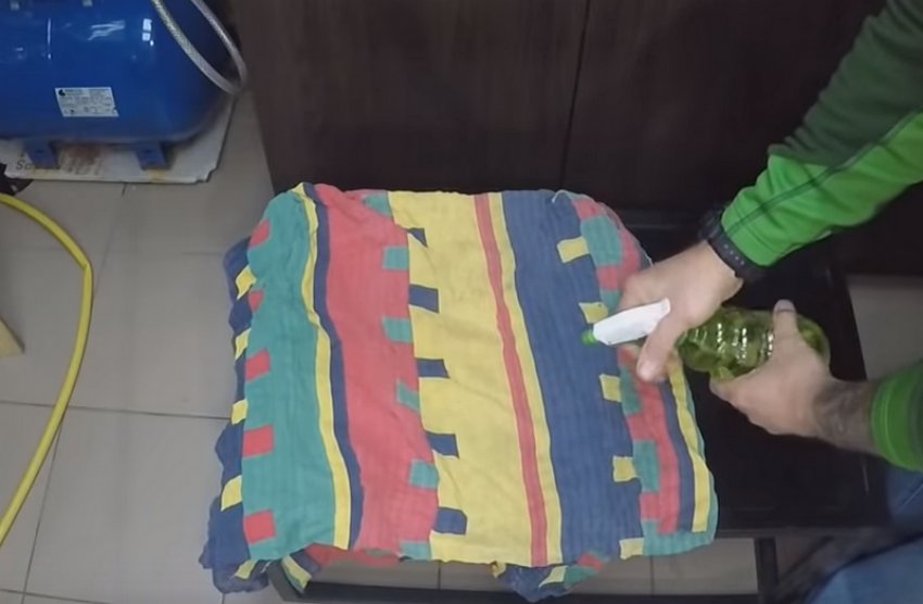 Застеліть деко для духовки вологою тканиною, покладіть поверх зерно шаром не більше ніж 2 см, а потім зверху знову накрийте його вологою тканиною.![]()