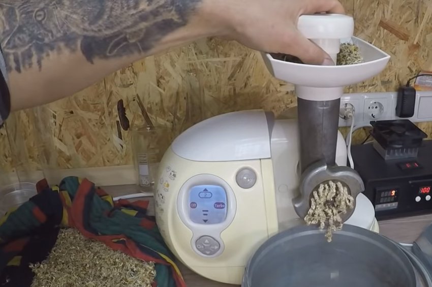 Промийте пророщену пшеницю, подрібніть її на м'ясорубці, а потім перемішайте з крупою.![]()