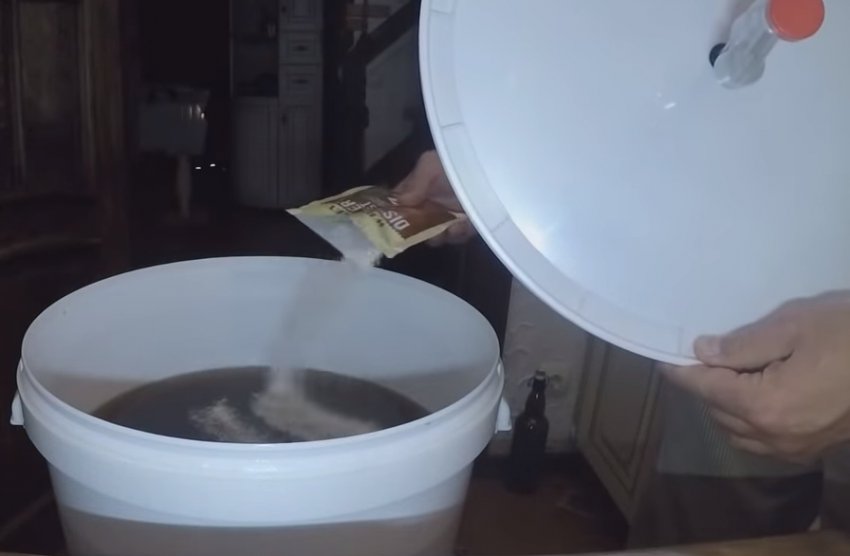 Охолодіть сусло до +30°С, перелийте його в ємність із кришкою, після чого додайте дріжджі та закрийте кришкою з гідрозатвором. Зброджувати слід у сухому і теплому місці (+20...+22°С) приблизно 7-12 днів.![]()