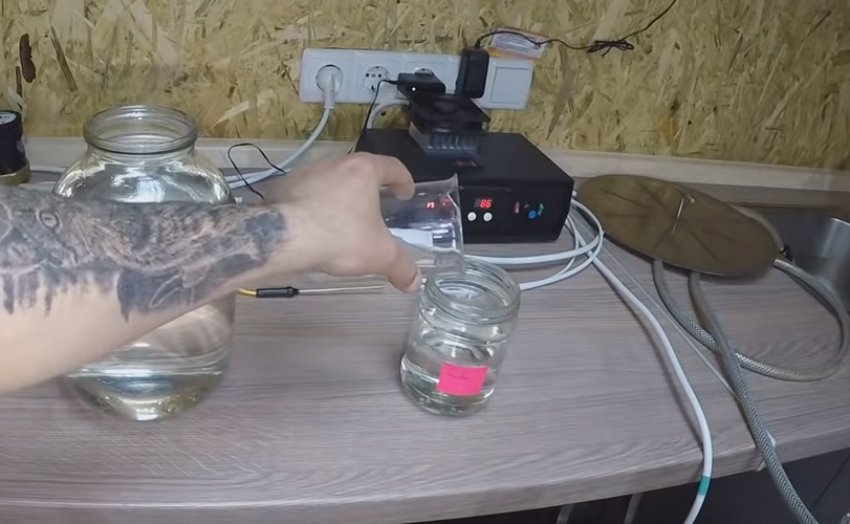 - Продистилюйте продукт першої перегонки ще 2 рази, а потім доведіть кінцеву фракцію холодною водою до міцності 40-45°. Щоб зробити смак приємнішим, перед вживанням напій рекомендується витримати в холодильнику 2-3 дні, а потім очистити фільтрувальним папером.