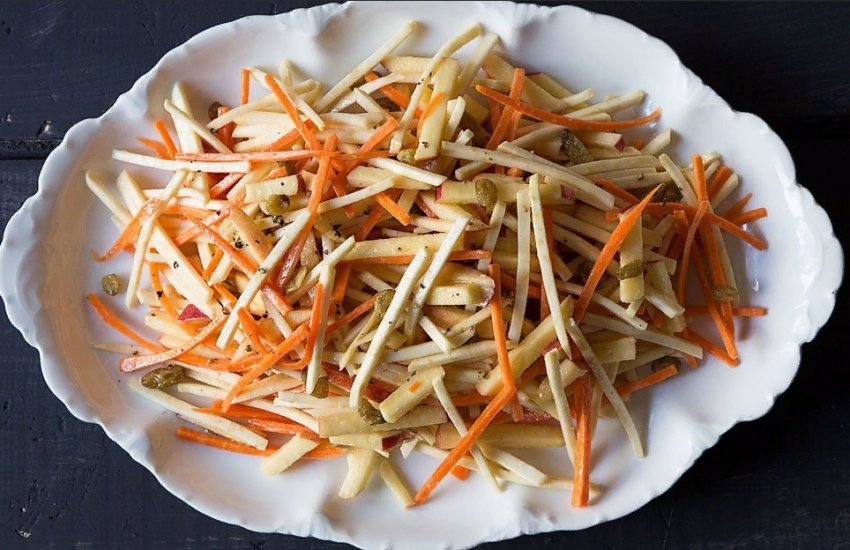 Весняний салат із селерою, яблуком і морквоюВидео-рецепт: Весняний салат із селерою, яблуком і морквою