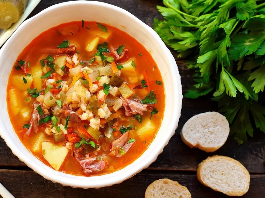 - Як картопля буде готова, додати в суп огірок і капусту, варити 10 хвилин.