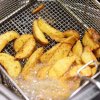 - Помістіть картоплю в кошик фритюрниці і смажте при 400 градусах протягом 10 хвилин. Струсіть кошик і перемішайте картоплю і смажте ще 8-10 хвилин.