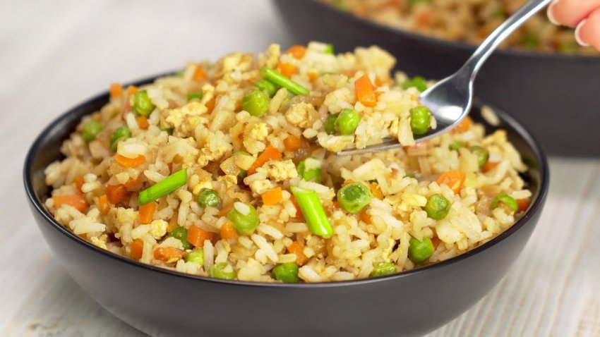 - Змішайте рис із морквою, капустою, цибулею та яйцем.