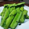 - Миємо огірки і розрізаємо їх на 8 частин. Загалом виходить 40 шматочків. Не забуваємо видаляти кінці.