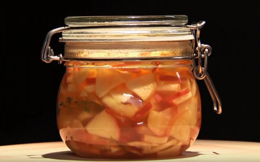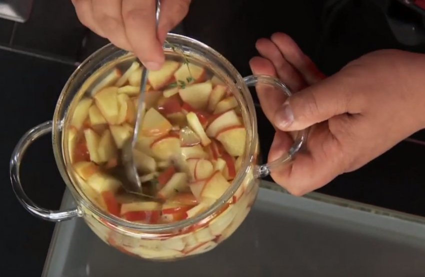 - Коли яблука проваряться хвилин 40, шматочки потемніють і стануть напівпрозорими. Це означає, що вони готові. Якщо деякі все ще світлі, то нічого страшного.