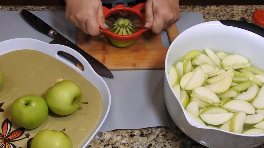 Для приготування підійде будь-який сорт яблук. Спершу плоди необхідно помити, нарізати, видалити серцевину.